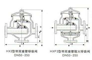 HXF2带双接管呼吸阀根据国家标准《石油化工企业设计防火规范》(GB50160-92)之规定:甲、乙类液体的固定顶罐,应设阻火器和呼吸阀。可见呼吸阀、阻火器是储罐不可缺少的安全设施。它不仅能维持储罐气压平衡,确保储罐在超压或真空时免遭破坏,且能减少罐内介质的挥发和损耗。上海bat·365(中国)正版唯一官网厂生产的呼吸阀,具有结构紧凑、通气量大、泄漏量小、密封性能好等特点。
