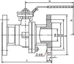 inch | DN | L | D | D1 | D2 | b | Z-Φd | H | W | |