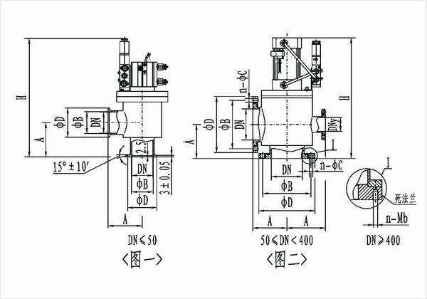 注:其中DN400以上底部采用死法兰n-Mb。
